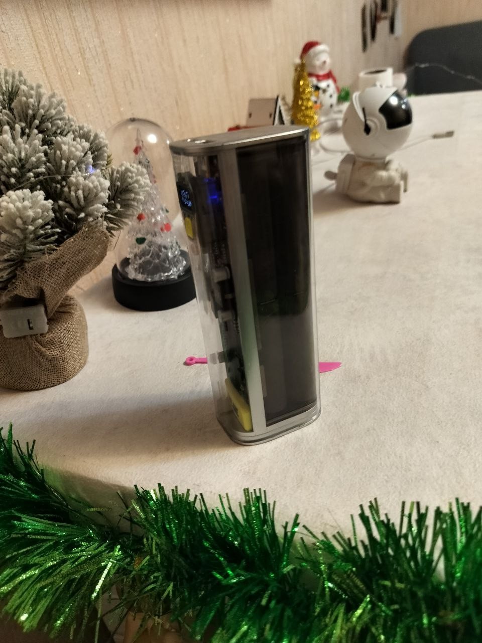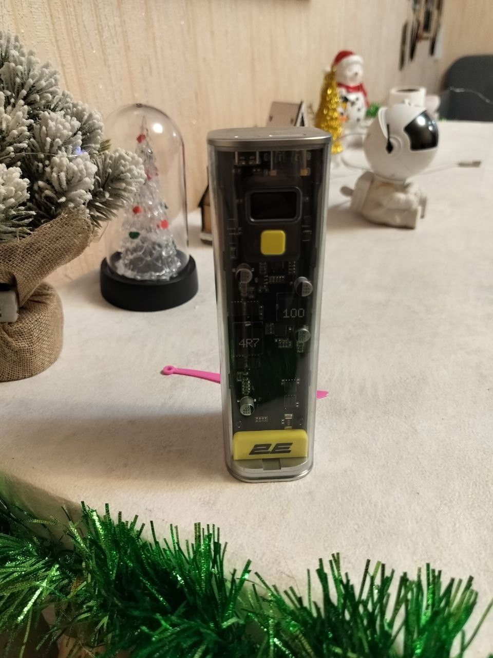 Эффектный портативный powerbank-аккумулятор высокой мощности, предназначенный для питания и подзарядки полноразмерных ноутбуков, мобильных рабочих станций, планшетов, смартфонов и других потребителей оснащенных силовыми портами USB C. Отличается значительной заявленной емкостью 24000 мАч (88 Втч), способностью отдавать через один порт мощность до 100 Вт и оригинальным наружным дизайном, выполненным с использованием прозрачного пластика корпуса.