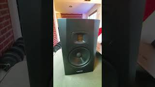 Модель имеет более уверенный охват в низкочастотной области и отличную проработку в нижней области средних частот. Верхние частоты детальные и ярко-выраженные, как это обычно бывает у Adam. Правда, звучание твитеров тут несколько специфическое и нравится не всем из-за своего окраса. В целом, это главная претензия к мониторам — по всему диапазону они звучат красивее и ярче, чем на самом деле. Поэтому их используют не столько для сведения, сколько для того, чтобы поставить клиенту демку. Ну и низким частотам немного не хватает детализации старших моделей. Но вся эта критика актуальна лишь в сравнении со знаменитыми A7X, которые по качеству звука находятся лишь немного впереди новых T7V, но стоят при этом в два раза дороже.