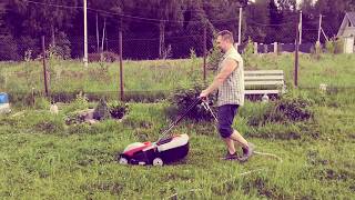 Косилке всего 20 дней,скосила она великолепно 3 сотки ровного не заросшего участка.Когда травка подрасла решила скосить ещё раз,но хватило её на 3 метра.Задымилась и оборвался ремень привода,В гарантии отказали т.к.это изнашиваемая деталь и не попадает под гарантию.Вот тут то и выяснилось что даже изнашиваемые детали достать просто не реально.В фирменном сервисном центре посоветовали её выкинуть и купить новую,перерыв весь интернет нашла привод,на украине... цена у него как треть косилки Лёгкая,не шумная,большего ощутить не успела.... Одноразовая,не обслуживаемая пользуюсь AL-KO Classic 3.82 SE неделю рекомендую не покупать |