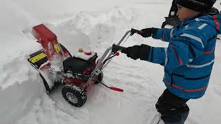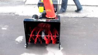 Снегоуборщик, заполучивший в распоряжение мощный движок с шестью запряженными «лошадками», не производит большого шума в ходе работы и экономно расходует горючее (порядка 1.6 л бензина в час). Двигатель задает темп вращения зубчатого шнека и передает крутящий момент на колеса, причем оба действия совершаются раздельно: управление работой шнека вынесено под левую руку оператора снегоуборочной машины, а передвижениями — под правую. Кроме того, «водителю» снегочиста выделена ручка КПП, позволяющая регулировать скорость колесного привода благодаря 5 передачам переднего и 2 скоростям заднего хода.