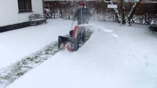 Запуск двигателя в работу осуществляется посредством ручного стартера: оператор машины дергает за тросик, который прокручивает вал и дает мотору необходимый начальный импульс. Упростить старт при значительных минусовых температурах помогает декомпрессионный клапан. Одним собой AL-KO SnowLine 560 способен заменить небольшой отряд из дворников со снегоуборочными лопатами, а это стоит того, чтобы обратить на модель самое пристальное внимание.