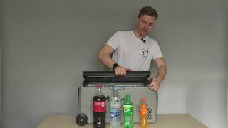 Корпус получил хорошую изоляцию и удерживает холод в течение нескольких часов. Объема 36 л достаточно для длительных автомобильных путешествий и рабочих поездок, кемпинга или однодневного отдыха на природе с друзьями. Холодильник внедряется в бортовую сеть машины, яхты, мобильных домов, функционирует от генераторов и домашней розетки 230 В. Из дополнительного функционала можно отметить модуль Bluetooth для синхронизации со смартфоном (требуется мобильное приложение), USB для зарядки, подсветку камеры. Контейнер-холодильник оснащен складной ручкой и мощными колесами для перемещения по грунту, песку, траве, асфальту.