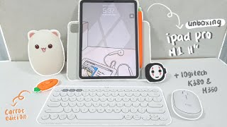 unboxing ipad pro 2021 + apple pencil gen 2, logitech accessories for ipad (shopee) | aesthetic