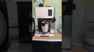 Достойная кофеварка при доступной цене. Для тех кому интересно, кофеварка готовит не латте, а латте макиато. Наличие автоматических программ (не часто встречается в рожковых кофеварках), а также наличие памяти при настройке объёма эспрессо. Все таки не полноценный автомат. |