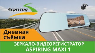 Авторегистратор в форм-факторе накладки на салонное зеркало заднего вида, поддерживающий двухканальный режим записи. Видео на фронтальную камеру Aspiring Maxi 1 пишется в разрешении Full HD (1920х1080 пикселей) с широким углом обзора порядка 170°. Выносная задняя камера в комплекте поставки модели предназначена для обеспечения видимости задней полусферы, также она применяется в качестве парковочного ассистента — поверх изображения с тыльной камеры накладываются линии парковочной разметки.