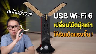 Адаптер в USB-порт компьютера с выдвижной антенной в форме крыла, которая обеспечивает уверенный приём сигнала от основного роутера. Антенна модели поддерживает функцию формирования луча Beamforming, которая эффективно усиливает приём беспроводного сигнала. А для размещения адаптера в зоне прямой видимости маршрутизатора в комплект поставки Asus USB-AX56 включён USB-кабель, отыгрывающий роль своеобразного удлинителя.