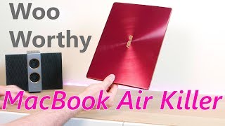 Первое, на что обращаешь внимание при взгляде на Asus ZenBook S — это его габариты. Почти все производители сегодня стараются делать тоньше, легче, но у Asus получилось что-то из разряда фантастики — толщина корпуса составляет всего 12.9 мм при весе в 1 кг. Для сравнения даже самые легкие и тонкие ультрабуки весят под 1.3 кг при толщине корпуса в 15 – 16 мм.