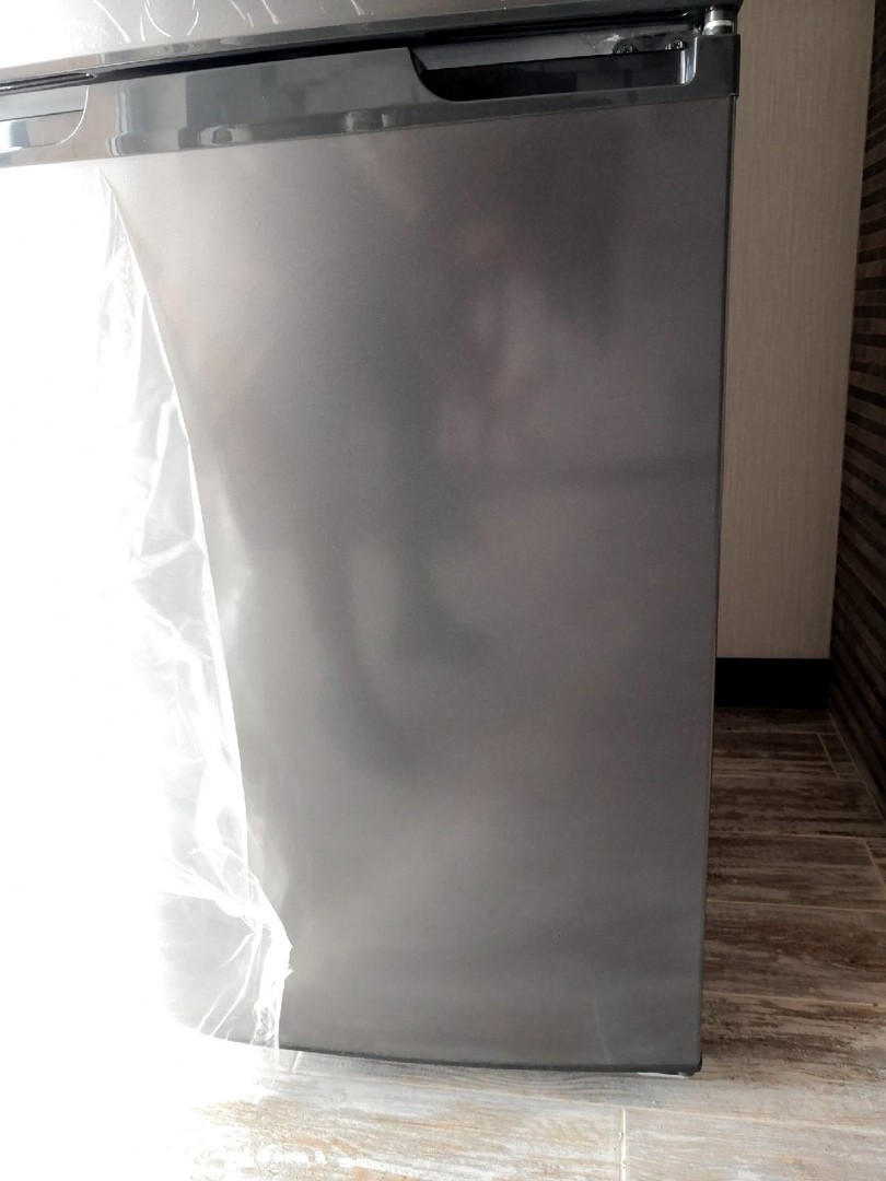 При распаковке выяснилось, что он просто серый, к тому же имеет многочисленные потертости на правой боковой панели, поскольку был упакован только в картонную коробку и перевозился лёжа. Ручка скрытая, некрасивая и туго открывается. На фасаде снизу обнаружился дефект эмали. Отказалась и купила другой марки, чёрный.