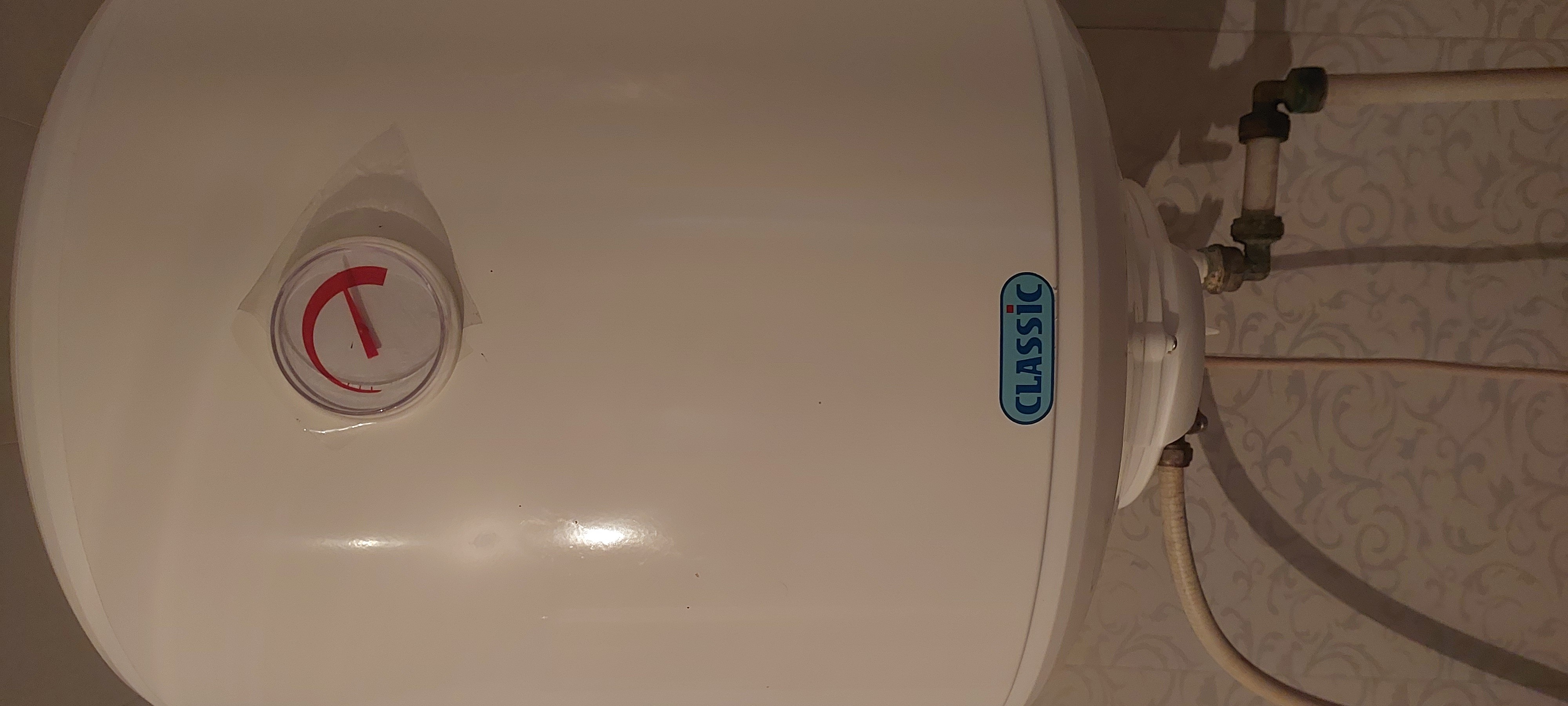 Простота конструкції. Тут немає складної електроніки, яка може згоріти при стрибках напруги. Звичайний механічний термостат - це надійно. Тривалий нагрів. Потужність 1500 Вт - це небагато. Повний бак з 15°C до 65°C гріється приблизно 1 годину 50 хвилин. |