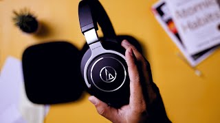Профессиональные полноразмерные наушники закрытого типа с продуманной конструкцией оголовья, съемным кабелем и профессиональным аналитическим звучанием. Модель построена на базе старого хита ATH-M50 и по факту может считаться их наследником. Она создана для нужд профессионалов в области звукозаписи, относится к верхнему ценовому сегменту и по всем показателям может считаться флагманской.