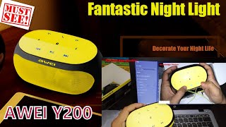 Верхняя грань Awei Y200 занята панелью управления с россыпью сенсорных клавиш и парочкой световых индикаторов статуса колонки (один из них информирует о процессе зарядки, а второй указывает на активное Bluetooth-сопряжение). Звуковая составляющая модели представлена парой 4.5-ваттных динамиков, охватывающих частотный диапазон от 20 Гц до 20 кГц. Время автономной работы колонки достигает 8 часов — именно настолько хватает накопленных запасов энергии в баках аккумулятора гаджета ёмкостью 2500 мАч. Для восполнение сил модели понадобится подпитка от розетки в течение полутора часов. На полках магазинов портативная акустика представлена во множестве цветовых вариаций: белом, золотистом, красном, розовом и жёлто-чёрном облачении.