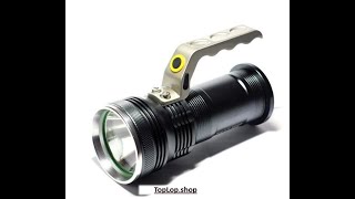 Для активации режима SOS необходимо длительно удерживать кнопку включения. Есть механизм фокусировки линзы. Прочный металлический корпус имеет неплохой уровень влагозащиты, да и в целом фонарик является ударопрочным. Батарейный блок представлен парой съемных аккумуляторов 18650. Для зарядки аккумуляторов можно использовать как бытовую сеть 220 В, так и низковольтную автомобильную 12 В — оба зарядных устройства, как и батареи, предусмотрены в штатной комплектации. Данный фонарик можно использовать как дома или на даче, так при организации отдыха на природе, а также в ходе поисково-спасательных операций. Изделие имеет плоское основание, благодаря чему модель способна устойчиво стоять на столе, превращаясь в настольный светильник.