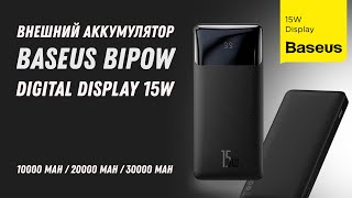 Модель облачена в корпус из матового пластика толщиной 42 мм и располагает информативным цифровым дисплеем в верхней части, на котором всегда отображается текущий уровень заряда. Powerbank BASEUS Bipow 15W 30000 может похвастаться впечатляющей емкостью батареи на уровне 30000 мАч (реальная емкость 18900 мАч), поддерживает технологию зарядки мощностью 15 Вт, а также может заряжать до трех различных девайсов одновременно.
