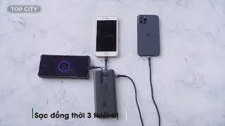 Одной из особенностей модели являются два встроенных кабеля (USB C и Lightning), что позволяет заряжать устройства без необходимости носить с собой дополнительные провода. Наличие дополнительного порта Type C предоставляет возможность одновременной зарядки трех устройств, а функция сквозной зарядки добавляет практичности.
