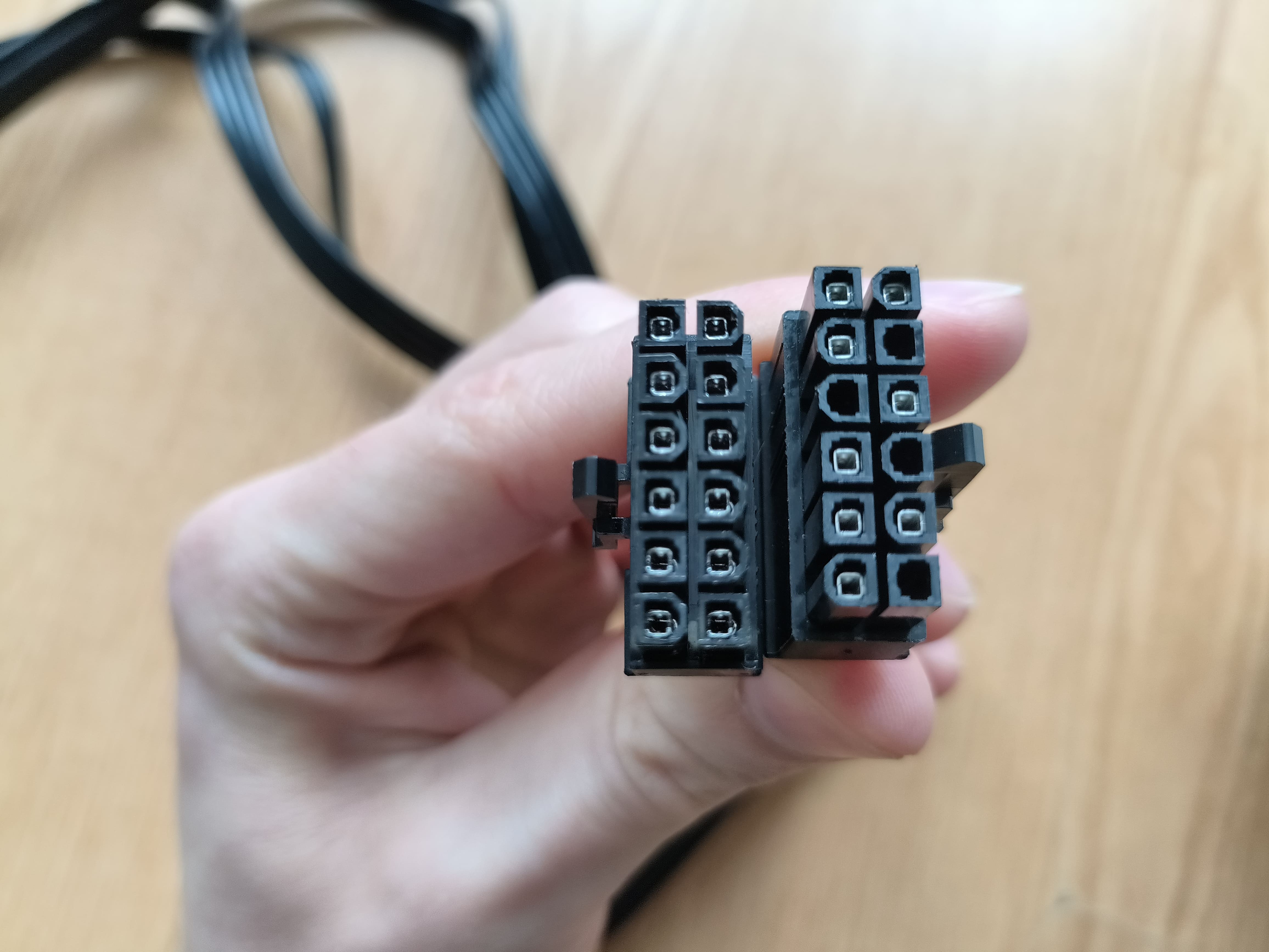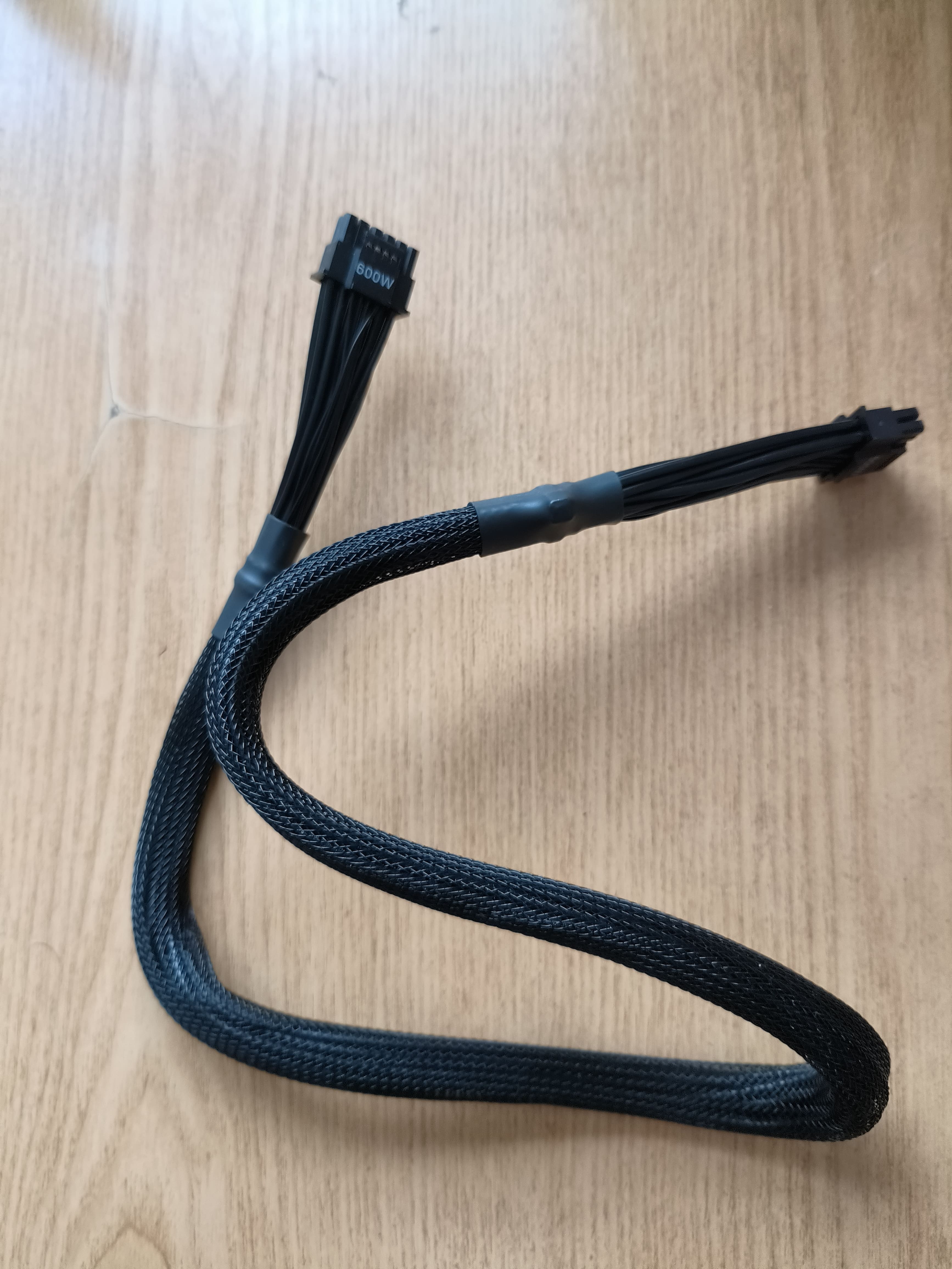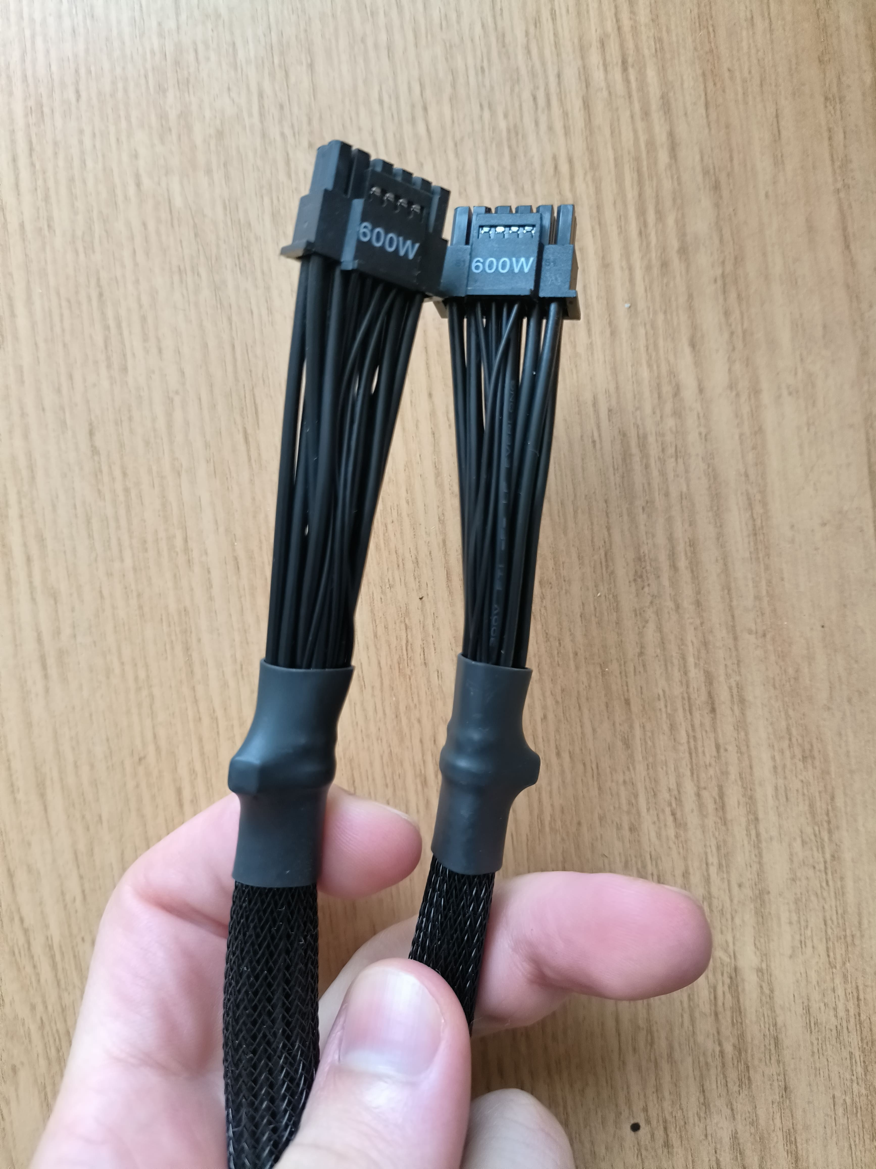 Заявлен он как 4x8pin, и так и есть, но двумя кабелями. Соответственно у него 2 разъема на блоке, но они не 8pin, а 12. Неплохо. Но вот сами кабели разные (видно на фото). Один идет с двумя параллельными шлейфами, каждый использует 6 контактов от разъема на блоке и идет в свой 8pin коннектор видеокарты. А вот второй имеет два последовательных 8pin коннектора, и разъем к блоку не использует 4 из 12 пинов. У меня вопрос, а зачем так делать. То есть они сделали два жирных разъема на блоке, чтобы просто сэкономить на одном кабеле и оставить в воздухе часть контактов? При том что второй комплектный кабель положили полноценный? Мда. Многие производители делают на блоке просто 8pin и вешают на него по 2 последовательных коннектора, тут сделали 12pin на блоке, что может и не глобально, но дороже. И потом сэкономить на кабеле. И понятно что оно как бы рассчитано и всё должно быть нормально, но всё же. Хотя по факту, если у вас карта на 2x8, то можно просто использовать тот что с параллельными, если 3x8, то берем два параллельных и один от последовательного. А карт 4x8 в целом не существует на данный момент. |