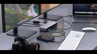 Топовая высокопроизводительная многофункциональная док-станция с разъемом подключения USB C (поддержка Thunderbolt 4), функциями USB-хаба (7-портовый USB-концентратор), двумя цифровыми видеовыходами HDMI для подключения дополнительных мониторов с разрешением до 8K при 30 Гц, производительным сетевым портом Gigabit Ethernet LAN (порт RJ45, до 1 Гбит/с), аудиоразъемом miniJack 3.5mm (для наушников и микрофона), картридером microSD/SD, комплектным внешним блоком питания (8,5А/20В) и поддержкой технологии ускоренной зарядки Power Delivery, с помощью которой можно передавать мощность до 90 Вт.
