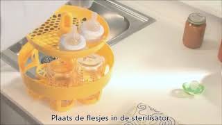 Это куда лучше и удобнее, чем кипятить бутылки в кастрюльке или в микроволновке. В этом стерилизаторе они буквально за 7-8 минут обрабатываются горячим паром, потом ещё несколько минут на остывание- и всё, чисто и просто. При этом пар и нагрев наружу не идут и в комнате не парит, а в жаркое время это важно. В ёмкость вмещается 6 бутылочек, сверху ещё можно накидать соски, пустышки, колпачки, мелкие игрушки. Работает от сети, хотя, конечно, хотелось бы и автономный вариант иметь - впрочем, это несущественный минус. Ставлю 5 звёзд, т.к. прибор очень удобный, простой, в комплекте всё, что надо (даже сменый стакан и щипчики для посуды), и качество отличное. быстро стерилизует, удобный, есть щипчики, пар наружу не идёт провод бы подлинее был или вообще автономная работа от батареек |