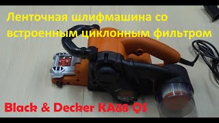 Как и подавляющее большинство ленточных шлифмашин подобного класса, показывает высокую производительность при обработке дерева, черных и цветных металлов, камня и твердых минеральных материалов (в т.ч. бетонов). Легко и быстро выравнивает плотные полимерные массы. Справится со шлифованием скосов и кромок. Электродвигатель ленточной шлифовальной машины Black&Decker KA88 имеет мощность 710 Вт и обеспечивает скорость движения абразивной ленты до 250 м/мин. Поддерживается сбор продуктов шлифования в комплектный фильтр-пылесборник. Замена ленты происходит одним нажатием специальной рукоятки. Благодаря переднему ролику малого диаметра, может обрабатывать поверхности вплотную к стене.