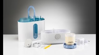 Прибор оснащен удобным и надежным механическим управлением и бесступенчатым (плавным) регулятором мощности. Синяя подсветка – интерьерная фишка, которая превращает увлажнитель в оригинальный ночник. Также благодаря сменному AG+ картриджу (с частицами серебра), залитая в резервуар вода смягчается и обеззараживается, дополнительно контактируя с антибактериальным покрытием бака BACTERIA FREE – таким образом, по заявлениям производителя, в воде погибает до 650 видов бактерий.
