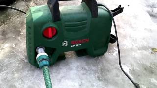 Относительно недорогая мойка высокого давления от популярного немецкого бренда. При мощности мотора в 1300 Вт изделие способно поддерживать давление на уровне 110 бар. Пенообразователь оснащен дозатором, что позволяет существенно снизить перерасход чистящей химии. Главной особенностью мойки Bosch AQT 33-11 является максимально компактный размер и добная форма. Так, изделие внешне похоже на небольшой переносной чемоданчик.
