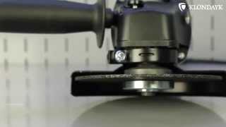 Инструмент работает с дисками диаметром 125 мм и щетками диаметром 75 мм. Подшипники и обмотки двигателя имеют надежную защиту от воздействия абразивной пыли. Двигатель дополнительно оснащен системой стабилизации скорости вращения под нагрузкой и плавным пуском. Предусмотрена быстрая настройка положения защитного кожуха, выполняемая без специального инструмента. Небольшой вес (1.8 кг), скромные габариты и хорошая эргономика уменьшают утомляемость рук.