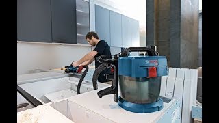 Работает от фирменных литий-ионных аккумуляторных батарей Bosch GBA или ProCORE 18V, которые предлагаются в ассортименте с емкостью от 4 до 12 Ач. Эти батареи не имеют эффекта памяти, не подвержены существенному саморазряду и защищены от глубокой разрядки. Строительный пылесос Bosch Professional GAS 18V-10 L имеет защиту от брызг воды (класс IPX4) и адаптирован для эффективной работы в широком температурном интервале от -20 до +50 град. При использовании аккумулятора емкостью 8 Ач может непрерывно работать до 32 мин. Вместительный пластиковый контейнер для мусора имеет внушительный рабочий объем 10 л, а его прозрачная стенка позволяет контролировать заполнение визуально. Для штатной работы пылесоса необходим пылевой складчатый фильтр площадью 2375 см².