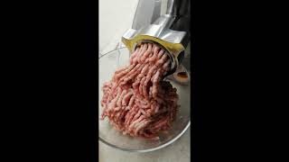 На пике 650-ваттный мотор устройства выдает мощность 1800 Вт, при этом он защищен как от перегрева, так и от перегрузок. С помощью функции реверса шнек прибора начинает вращаться в обратную сторону, что позволяет очистить его от мясных жилок без разборки. С такими данными модель способна перерабатывать на фарш до 3 кг мяса в минуту. На деле же стоит рассчитывать на 1-1.5 кг перекрученного мяса — пропихнуть в загрузочную горловину диаметром 4.5 см больше попросту сложно.