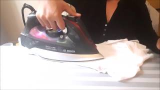 Компания Bosch позиционирует утюг TDI 903231A как компактную паровую станцию. Модель, рассчитанная на 3200 Вт, способна постоянно генерировать пар со скоростью 65 г/мин, но вот мощность ее парового удара (200 г/мин) уступает возможностям современных приборов с парогенератором. Хотя для большинства домашних нужд и этого вполне достаточно.