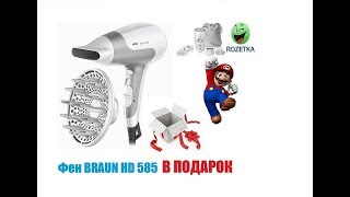 Предусмотрена система ионизации, которая, как считается, обеспечивает шевелюре дополнительный оздоровительный эффект — после сушки становятся более блестящими, гладкими и лучше сопротивляются электризации. Фен Braun HD-585 укомплектован только двумя наиболее часто используемыми насадками: концентратором, сужающим поток выпускаемого воздуха и придающим объем, и диффузором, фиксирующим укладку.