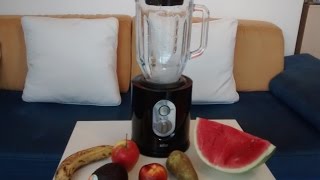 Стационарный блендер это нифига не предмет первой необходимости. Поэтому выделить деньги на его покупку получилось не сразу, хотя жена просила давно. Но тут скорее дело в том, что покупать какой-то хлам не хотелось, а такие достойные аппараты как эта модель стоят совсем не дешево. Марку Браун сразу выбрал как ориентир, потому что эта немецкая контора специализируется на таких устройствах. У них даже бюджетные модели, если их сравнивать с другими торговыми марками, получаются на хорошем средней уровне. Так что отдавать 130$ было жалко (жаба душила, да), но деньги потрачены не зря. В этом я уже убедился. Стоит на столе как влитой, резиновые ножки не дают проскальзывать. Кувшин стеклянный, с толстыми литыми стенками. Тяжелый и очень прочный. Стекло использовано термостойкое, перепадов температуры оно не боится от слова совсем. Жена готовила в нем горячий суп-пюре. Ножи острые из качественной нержавеющей стали, но увлекаться колкой льда все равно не стоит. Лед это довольно твердый материал и даже такие острые ножи могут довольно быстро затупиться. Думаю, что закаленные ножи из углеродистой стали такой проблемы не имели бы, но они бы точно ржавели уже после первого использования. Управляется блендер одной кнопокой и поворотным селектором, который выбирает готовую программу (поворот налево) или скорость (поворот направо). Разница в том, что готовые программы останавливаются автоматически, то есть следить за работой совсем не обязательно и можно заняться своими делами. Внутри блендера очень мощный, киловаттный двигатель. Поэтому на густых смесях или овощных/фруктовых пюре никаких проблем не возникает. Тяжелый стакан. Мне норма, но жена периодически жалуется. Высокий уровень шума, гудит адово. |