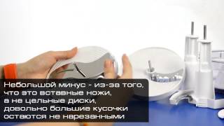 . Универсальная соковыжималка мощностью 1000 Вт. В наличии отдельностоящая емкость для сбора сока, объемом 1,25 л. Резервуар для жмыха имеет объем 2 л. предусмотрен сепаратор для пены и система автоматического выброса мякоти. Управление происходит с помощью переключателя механического типа - всего предусмотрено 2 скорости работы устройства.