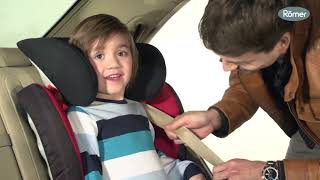 Britax Romer Kid II подлежит установке лицом по ходу движения «железного коня», фиксация кресла и ребёнка в нём производится посредством штатного ремня безопасности авто (для его правильной прокладки предусмотрены специальные направляющие в конструкции изделия). Надёжную защиту юного пассажира в аварийных ситуациях гарантируют развитые боковины (в т.ч. у подголовника) и глубокая посадка. Регулировкам в кресле поддаётся высота подголовника (11 позиций). Тканевая обивка детского автосидения выполнена съёмной во благо удобства очистки от загрязнений вручную или стирки в деликатном машинном режиме. В краш-тесте по стандартам Всеобщего немецкого автомобильного клуба ADAC кресло получило высокий балл «Хорошо» (+).