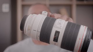 Телеобъектив премиум-класса под системы Canon с байонетами EF и матрицами full frame. Одной из главных особенностей является пылевлагозащищённый корпус, позволяющий использовать объектив в неблагоприятных условиях. Диапазон фокусных расстояний составляет 70-200 мм, при этом светосила неизменна — f/2.8, а передняя линза неподвижна. В конструкции предусмотрен стабилизатор изображения, а также ультразвуковой привод автофокусировки.