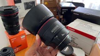 Этот объектив выделяется в первую очередь высоким значением светосилы — 1,2 — что особенно примечательно с учётом его фокусного расстояния — 85 мм. Рассчитан на использование в системах Canon с матрицами Full frame, заявлен производителем как специализированная оптика для портретной съёмки. Автофокусировка обеспечивается ультразвуковым мотором. Ещё одна примечательная особенность — интеграция с системами вспышки E-TTL II камер EOS. Комплектуется блендой.