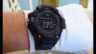 Конечно, из-за этого устройство выглядит массивным и весит 101, так что больше подойдет для большой мужской руки. Casio GBD-H1000, в отличие от большинства современных смарт-часов, оснащены несенсорным экраном, который, тем не менее, имеет подсветку и отображает входящие вызовы и сообщения, сопровождая это вибрацией. К смартфону часы подключаются по Bluetooth и даже помогут найти его в случае потери.