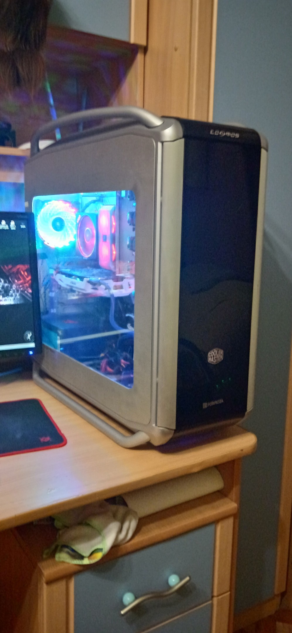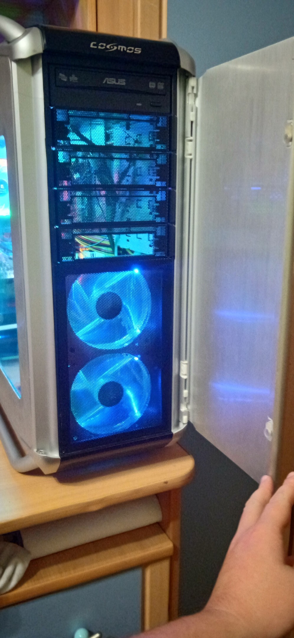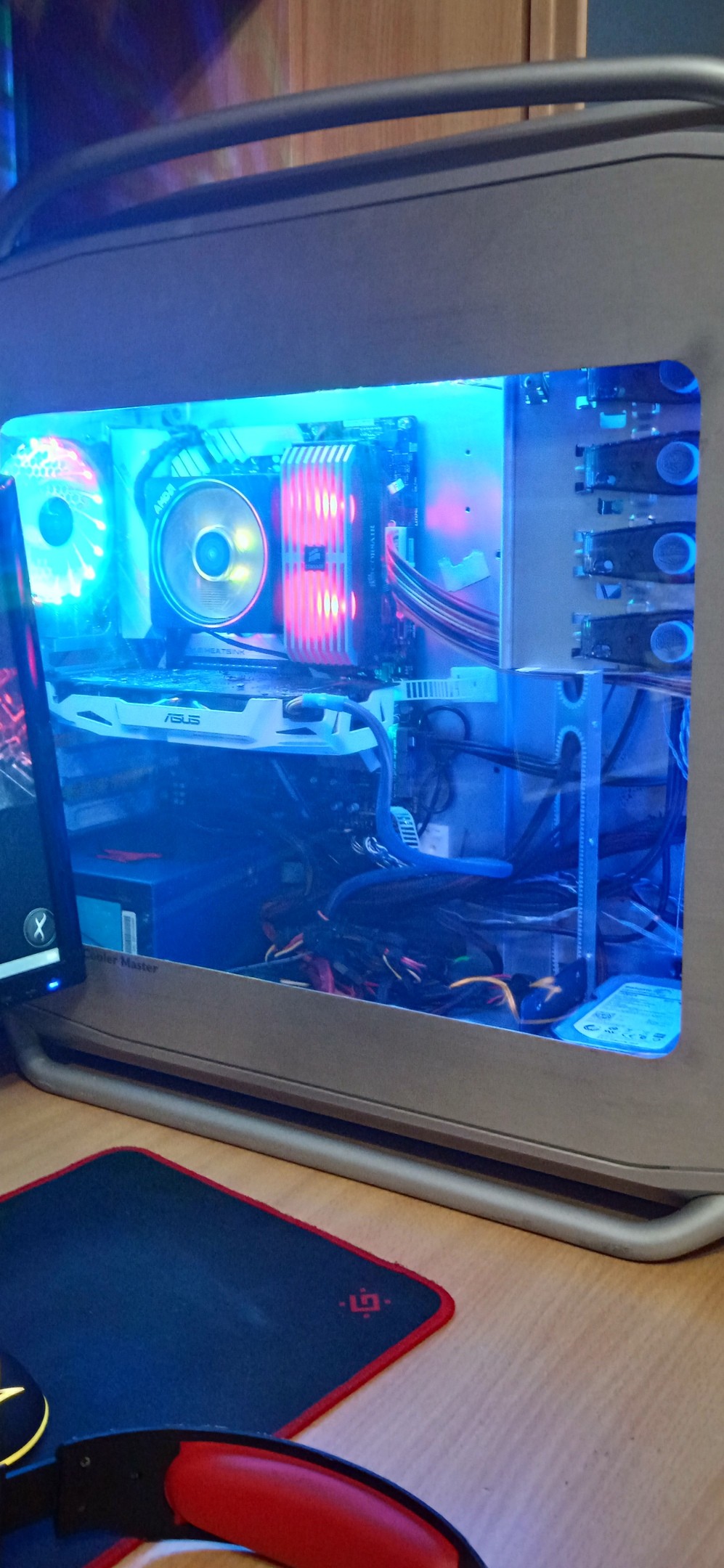 Есть на данный момент такой корпус! Очень большой и тяжелый) при переезде вызовет неудобства) корпус хорошо продуваемый, я потсавил в него 5 кулеров по 120мм. При этом сделал модинг в виде боковой стеклянной крышки, кабель менеджмент и спереди сделал место на два 120мм кулера. Мест под жесткие диски полно, целых 6 штук! 5 мест для DVD приводов или же USB хабов! В него умещается все! Продуваемость хорошая! Если сделать моддинг то будет прекрасно! Что нет кабель менеджмента за боковой крышкой как у его собратьев! |
