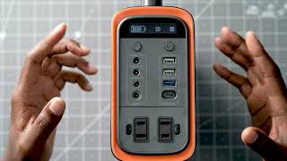 В распоряжение модели поступили одна розетка на 230 Вт с чистым синусоидальным сигналом на выходе, три порта USB A (один из которых поддерживает быструю зарядку Quick Cgarge 3.0 18 Вт), порт USB type C с поддержкой Power Delivery (60 Вт), три DC-выхода на 12 В. Заряжается батарея устройства от бытовой розетки, гнезда автоприкуривателя, через порт USB type C, опционально к модели можно докупить солнечные панели для восполнения энергетических запасов в ячейках аккумулятора от небесного светила. На тыльной части корпуса зарядной станции размещается двухрежимный LED-фонарик с функциями постоянного свечения и подачи аварийного сигнала SOS. Прибор оборудован удобной ручкой для переноски, весит модель порядка 3.6 кг.