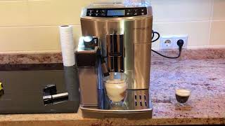 Полностью автоматическая кофеварка от известного европейского бренда, выпущенная на рынок в 2017 модельном году. Относится к высшей ценовой категории и может похвастаться расширенной функциональностью. Имеет современное электронное цифровое управление и графический ЖК-экран. Может готовить 14 разновидностей кофе и молочно-кофейных напитков, среди которых эспрессо (классический, лунго и макиато), американо (полноценная эмуляция капельного заваривания), Flat White, латте, капучино, латте макиато и пр.