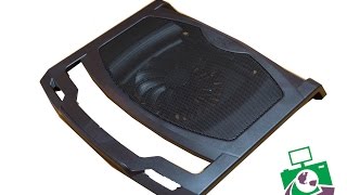 Модель подойдет для ноутбука с диагональю 15.6 дюймов и меньше. Ее параметры составляют 340x308x50 мм. Активное охлаждение реализовано в виде 140-мм кулера, который работает от питания ноутбука. Сам штекер, идущий от подставки, специально оборудован дополнительным USB-входом.
