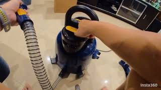 Для удобства транспортировки предусмотрены колесики и прочная ручка. Гибкий шланг можно обернуть вокруг корпуса, а 5-метровый сетевой кабель оснащен функцией автосмотки. Также на корпусе имеется держатель для щеток.