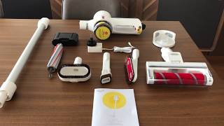 вертикальный, с портативным блоком, аккумуляторный, сухая и влажная уборка, циклон, HEPA, мощность 100 Вт, тяга 17000 Па, шум 84 дБ, насадки: электротурбощетка, для мебели, щелевая, пылевая, швабра, вес 2.3 кг