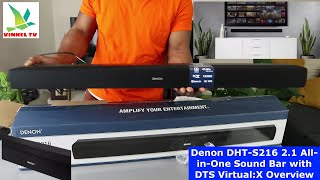 Позиционируется как доступный продукт средней ценовой категории образца 2020 года, ориентированный на использование вместе со сравнительно небольшими телевизорами различных производителей (размеры оптимизированы для размера экрана от 43"). Основной способ подключения саундбара Denon DHT-S216 реализуется через стандартный порт HDMI с технологией eARC, позволяющей наслаждаться объемным звуком качества в таких форматах, как DTS и Dolby Digital Plus. Эти форматы обеспечивают виртуализацию окружающего звучания, что принципиально важно не только при просмотре фильмов, но и во время игр. Также возможно беспроводное подключение по Bluetooth и более традиционный вариант с присоединением аналогового источника (3-pin mini-Jack 3.5mm).