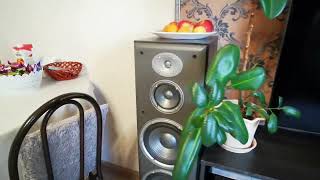 раскачивает пару колонок Deluxe Acoustics DAF-350 + саб. Yamaha в комнате 26 м2, громкость выше 50% не поднимал. Звук зависит не только от усилителя но и от колонок, акустического оформления комнаты. Усил показал себя на 5+.