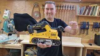 В качестве шлифовальной оснастки используется закольцованная лента, имеющая ширину 75 мм и длину 533 мм. Конструкция подошвы и барабанов позволяет быстро менять ленту и обеспечивает автоматическую центровку оснастки во время работы. Инструмент может работать вместе с текстильным пылесборником (входит в комплект) или с пылесосом, шланг от которого подключается к выходному патрубку шлифовальной машины. Прибор в данной комплектации поставляется без АКБ и зарядного устройства. Для питания инструмента требуется литий-ионная батарея DeWALT 18V XR.