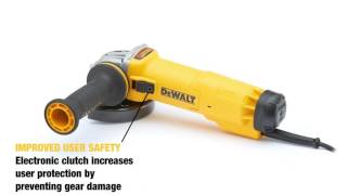 Болгарка DeWALT DWE4237 оснащена системой защиты от пыли. На заднем торце находится диффузор, призванный задерживать крупные пылевые частицы. Угольные щетки двигателя и шестерни редуктора увеличены по сравнению с УШМ того же класса мощности, чтобы добиться высокой надежности и увеличить межсервисные интервалы. На металлическом корпусе редуктора есть массивные ребра для его охлаждения. Система плавного пуска уменьшает нагрузку на двигатель и рывки во время включения болгарки. Все это способствует продолжительному сроку службы инструмента без поломок.