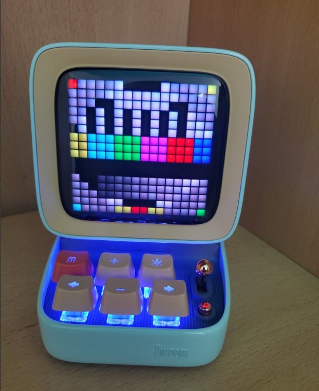 Весьма оригинальное виденье портативной акустики от компании Divoom — колонка Ditoo Pro выполнена в форм-факторе небольшого ретро-компьютера. Причём экран у него вполне умело отображает пиксельные анимации, а при желании на нём можно поиграть в казуальные игры по типу культовой «Змейки». Управление завязано на клавиатуру и крохотный джойстик. Картинки на экран «компьютера» можно выводить через мобильное приложение для сопряжённого смартфона.