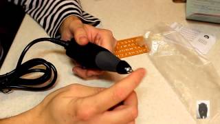 Благодаря регулировке глубины гравирования пользователь может подбирать оптимальную частоту ударов для нанесения надписей и узоров на кожу, дереву, стекло, металл и другие материалы. В комплекте есть три гравировальных наконечника и набор из 4 декоративных шаблонов для аккуратного нанесения букв, цифр, знаков и рисунков. Данный гравер отличается компактными размерами (170x33x45 мм) и имеет небольшой вес (0.31 кг).