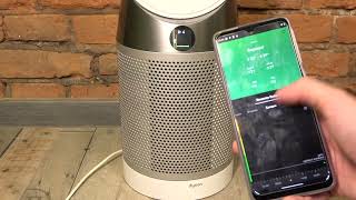 Из органов управления на борту устройства присутствует кнопка включения/выключения и небольшой цветной экранчик круглой формы. Он показывает уровень загрязненности атмосферы в режиме реального времени. Доступ к полному перечню функций воздухоочистителя открывается с миниатюрного пульта ДУ, на котором есть кнопки установки таймера автоотключения, регулировки мощности вентилятора, активации бесшумного ночного режима воздухоочистки. Также ночью устройство затемняет экран.
