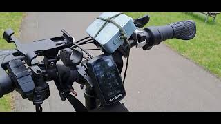 Алюминиевая рама велосипеда складывается в двух точках — у руля и в центральной части корпуса, благодаря чему электробайк удобно хранить и транспортировать в багажнике автомобиля. Однако вес устройства немалый — 33.5 кг в полной сборке. В центральной части рулевой стойки установлен информативный бортовой компьютер с цветным ЖК-дисплеем. На руле также размещены ручки управления дисковыми механическими тормозами и триггерная манетка переключения 7-скоростной трансмиссии.