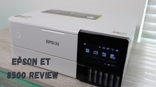 Позиционируется как продукт верхней ценовой категории 2022 года, предназначенный для использования в условиях офиса и обслуживания потребностей рабочих групп. Важнейшей особенностью этой модели стала надежная фирменная СНПЧ с большими чернильными емкостями (6 чернил), которая повышает стоимость устройства по сравнению с картриджными моделями, но снижает стоимость отпечатка. Благодаря печатающей головке PrecisionCore Print Head с функциями контроля и компенсации забитых дюз, а также использованию фирменных чернил, МФУ Epson EcoTank ET-8500 выполняет быструю и качественную печать ч/б документов и фотореалистичных изображений. Планшетный CIS-сканер с высоким оптическим разрешением обеспечивает быстрое сканирование для создания цифровых и бумажных копий. К плюсам этой модели также стоит отнести оснащение МФУ тремя типами интерфейсов подключения: Wi-Fi 4, Ethernet LAN и USB. Поддерживается вывод с USB-флешек и карт памяти. Возможна печать на оптических дисках.